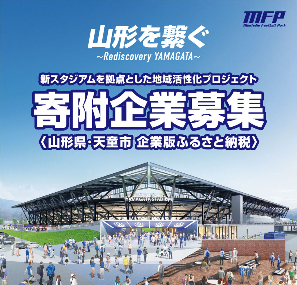 山形県、天童市は、新スタジアム建設を契機とした地域活性化プロジェクトにおいて、企業版ふるさと納税の寄附受け付けを開始・再開いたしました。 本プロジェクトは、株式会社モンテディオ山形、株式会社モンテディオフットボールパークが主体となって実施する天童市を中心に山形県広域の活性化を目的とした取り組みです。新スタジアムを拠点とする地方創生の趣旨にご賛同いただき、ご寄附を検討いただける企業様を募集いたします。